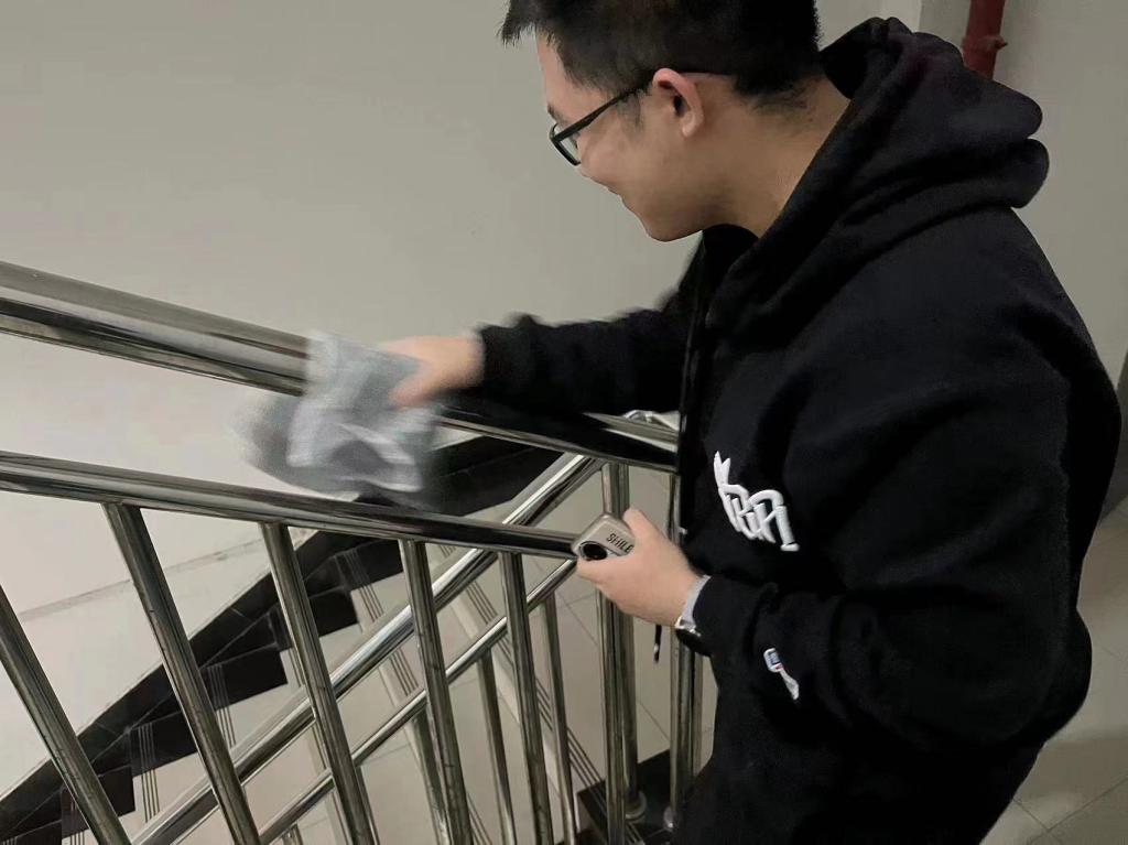 劳动现场同学们热情昂扬,拿着笤帚、抹布等清理工具来到学院的角角落落。有的拿着笤帚清扫生活垃圾,而对绿化带中不易清扫到“卫生死角”,有的同学徒手去清理生活废弃物,有的则拿起抹布认真擦拭着学校的每一方。在清理过程中虽然很累,但大家不怕脏不怕苦,现场一片热火朝天的景象,身行力践着雷锋精神。