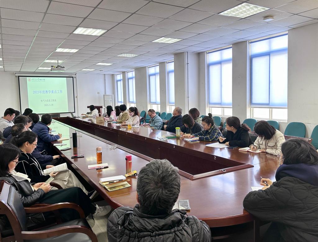 会议上,刘晓明老师传达了学院前期教学会议上的会议内容及精神。会议结合学院2023年度教学重点工作安排对电信系本学年的教学工作进行了安排和讨论。