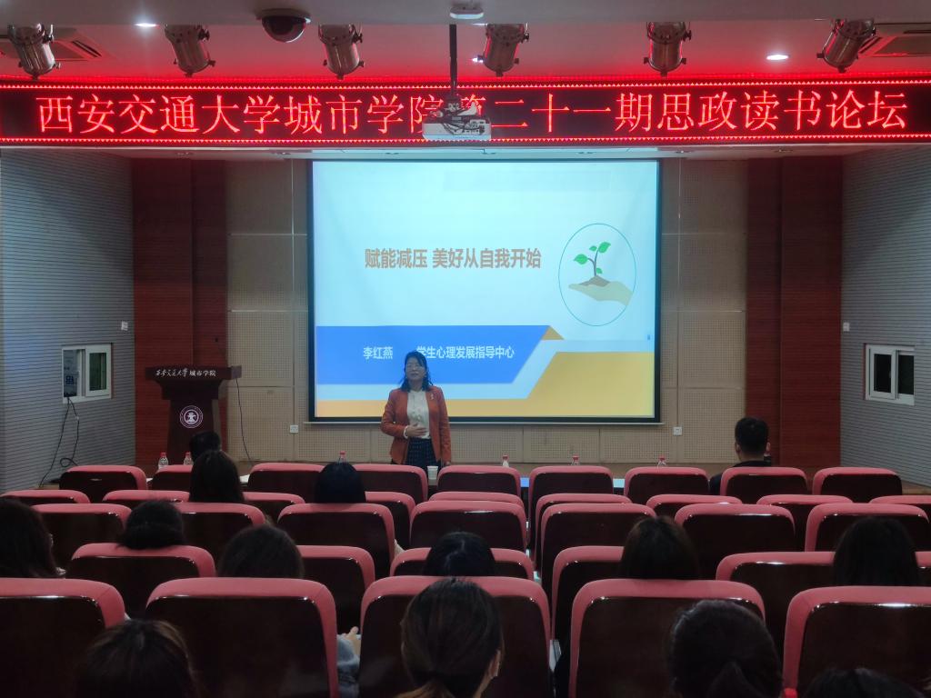 3月30日,学生服务中心开展第21期思政读书论坛,邀请西安交通大学心理咨询中心李红燕老师为全体辅导员作“赋能减压,美好从自我开始”的专题讲座。学生服务中心常务副主任辛红伟、副主任吴昊翔及全体学工人参加了本次活动。