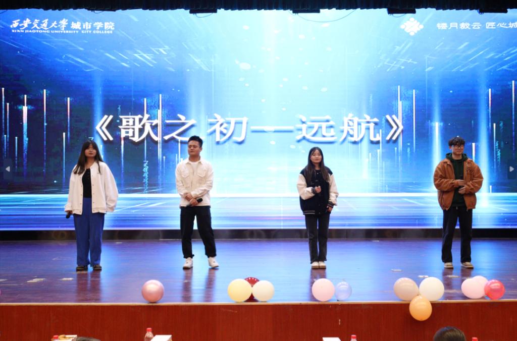 为了缓和比赛的紧张气氛,由周博宇、何璐等同学带来的激动人心的情景剧《南仁东》走向了舞台。最后周文、刘梦琪等同学为大家带来的合唱《歌之初远航》,感染了每一位在场嘉宾。