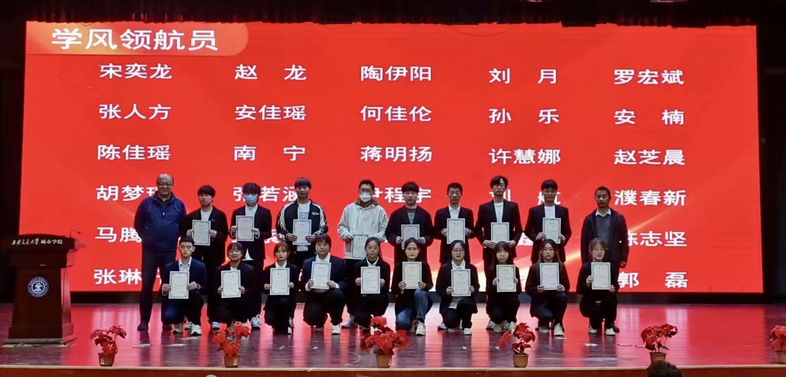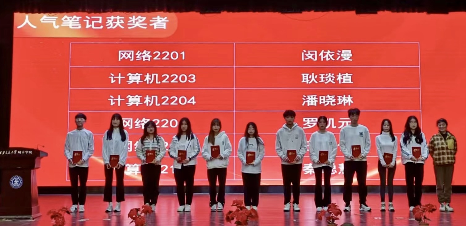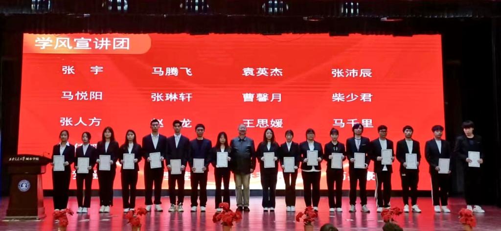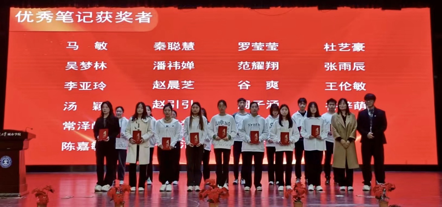 首先由副主任许大炜老师宣读表彰决定,并介绍了开展此次活动的目的和意义。随后,荣获“优秀朋辈大使”“优秀学风宣讲团”“最美笔记”“晨读之星”等荣誉的同学依次上台,系主任姚全珠教授及全体老师分别为获奖学生颁发了荣誉证书,对过去一年积极努力且取得成绩的学生进行表彰。