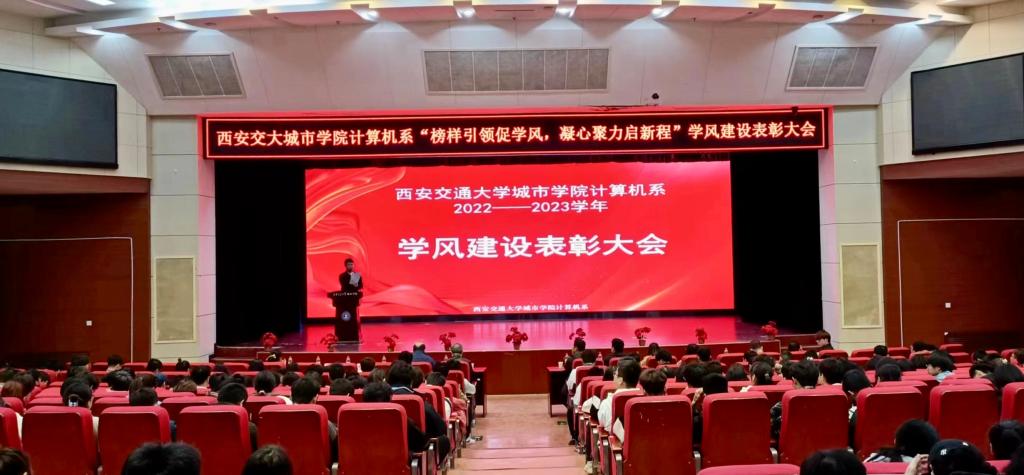 为了营造积极向上、严谨诚信、求实务新的学习氛围,传播优良学习之风,在过去一学年中计算机系举办了最美笔记评选、晨读打卡、翱翔计划等多项学风建设活动,并组织成立了计算机系学风宣讲团、学风“领航员”等多名优秀朋辈团体,旨在激励计算机系全体学生端正学习态度,培养和鼓励各级学生相互学习与借鉴,切实促进学生的全面发展。为表彰优秀、鼓励先进、树立典型,威尼斯7798cc计算机系于4月7日中午在教二报告厅举办了“榜样引领促学风,凝心聚力启新程”学风建设表彰大会。系主任姚全珠教授、副主任许大炜、主任助理刘敏涛、2022级班主任段竹以及全体辅导员老师出席本次大会。全体获奖学生、计算机系2022级学生参会。