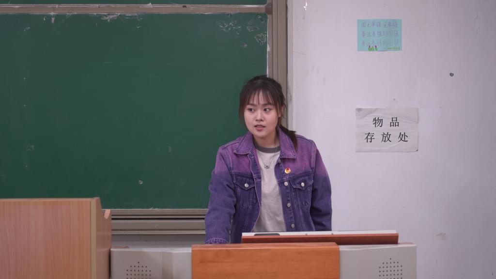 学生党员唐弋博从作者介绍、作品评价、书籍简介、作品鉴赏四个方面分享了《红岩》。她表示,如今这一片生机勃勃的景象是无数革命战士用鲜血换来的,作为党员更应学习其中的爱国主义精神,刻苦学习、立志成才,为建设美好祖国而努力奋斗。