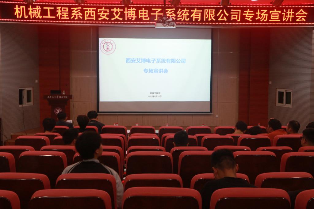 为深入贯彻落实党中央、国务院稳就业保就业决策部署,搭建用人单位与毕业生的沟通交流平台,推动企业和人才之间的双向交流,促进机械工程系毕业生更充分更高质量就业,4月19日下午,机械工程系邀请西安艾博电子系统有限公司在F100举行了“访企拓岗促就业——企业进校园”第五场活动。本次活动由机械工程系主任助理王丽丽主持,机械工程系毕业班未就业学生参加。