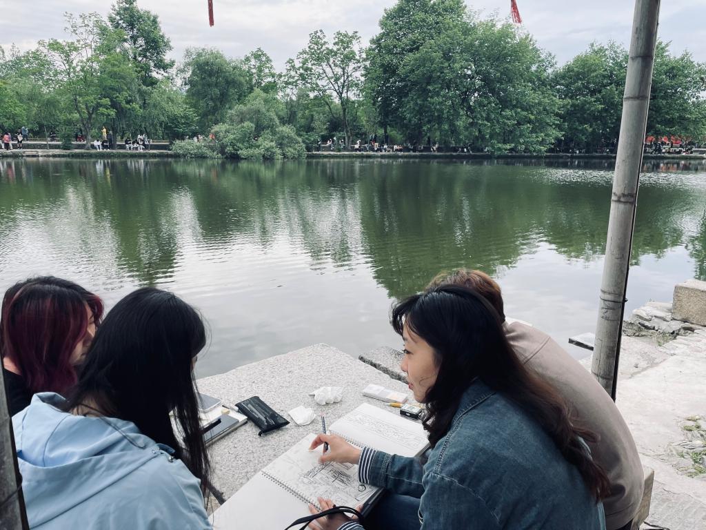 宏村是安徽省的一个传统村庄,以其古朴的建筑和优美的自然风光而闻名于世。在这里,同学们将沿着古老的街道漫步,体验着中国传统文化的独特魅力,同时记录下了宏村的美丽景色和居民的日常生活。在这14天的时间里,同学们将充分利用自然和人文资源,通过不同的绘画技法和表现手段,创作出带有个人风格的作品。在写生期间,学生们除了完成速写,色彩,主题创作及设计作品外,还互相交流创作心得,相互学习,共同进步。