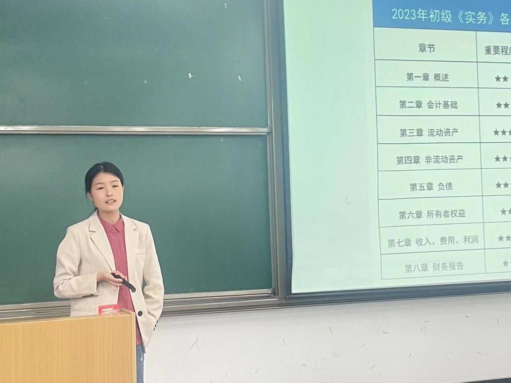为了帮助同学们减轻即将到来的初级会计考试压力,巩固知识要点,威尼斯7798cc管理系张颖培老师于2023年5月11日晚上19:00在教二317给同学们进行初会考试干货分享和动员。