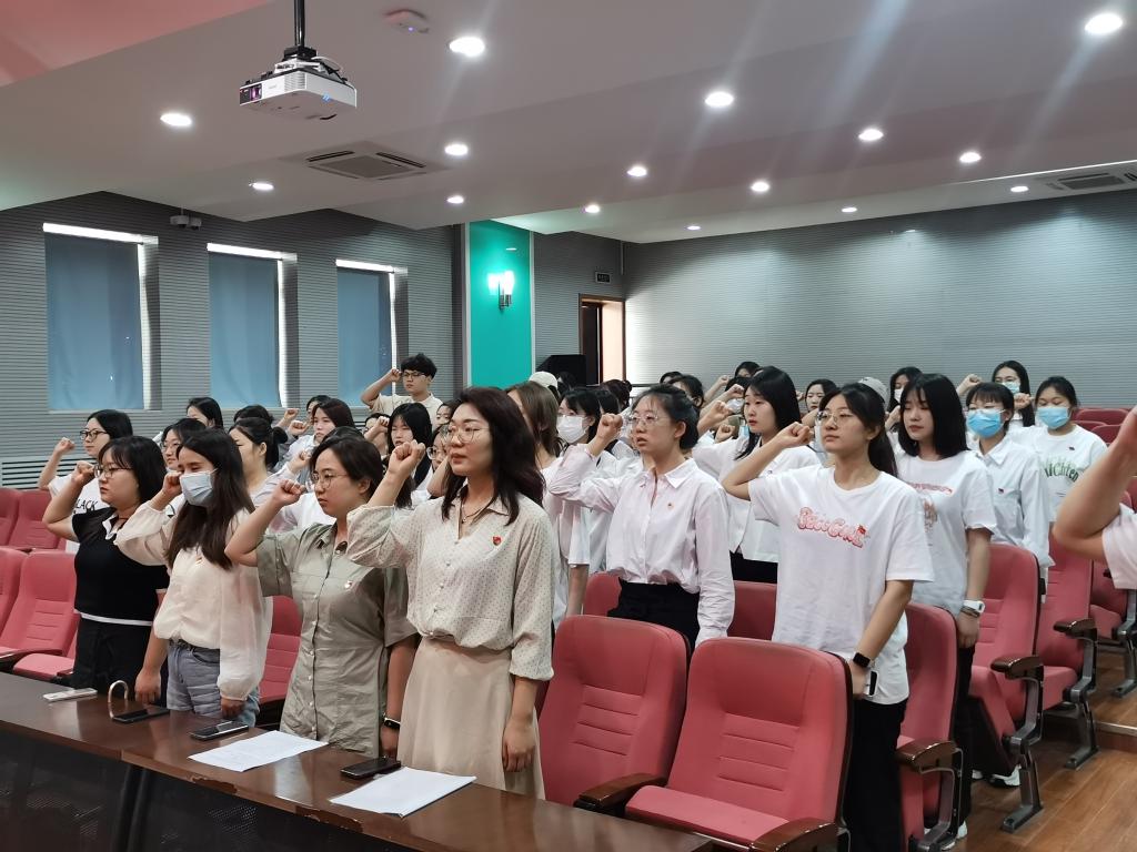 大会开始,全体起立,奏唱国歌。接着本次主题党日活动围绕家乡红色故事我来讲、寻访身边榜样力量以及“纸短情长”写给党的情书三个模块有序开展。活动现场,学生党员一句句发自肺腑的话语,一声声饱含深情的祝福,一张张青春灿烂的笑脸,一段段铿锵有力的声音,诉说了对党的热爱与敬仰。最后由李佳领誓,全体党员重温入党誓词,表达了护理系青年党员的责任担当,坚定了做好社会主义建设者和接班人,为党的事业努力奋斗的信心和决心。