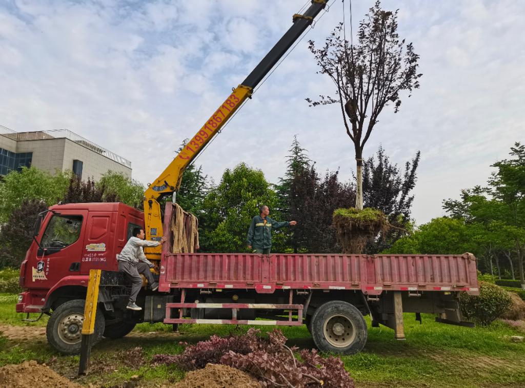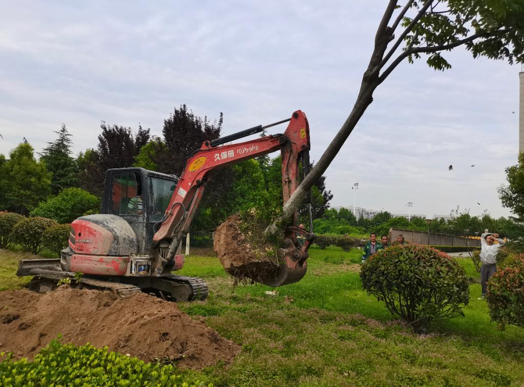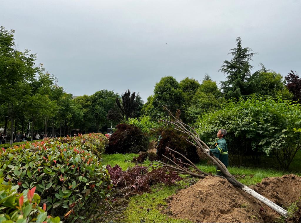 5月23日,条保部组织绿化人员对教二楼东南侧的红叶李进行了移栽工作。