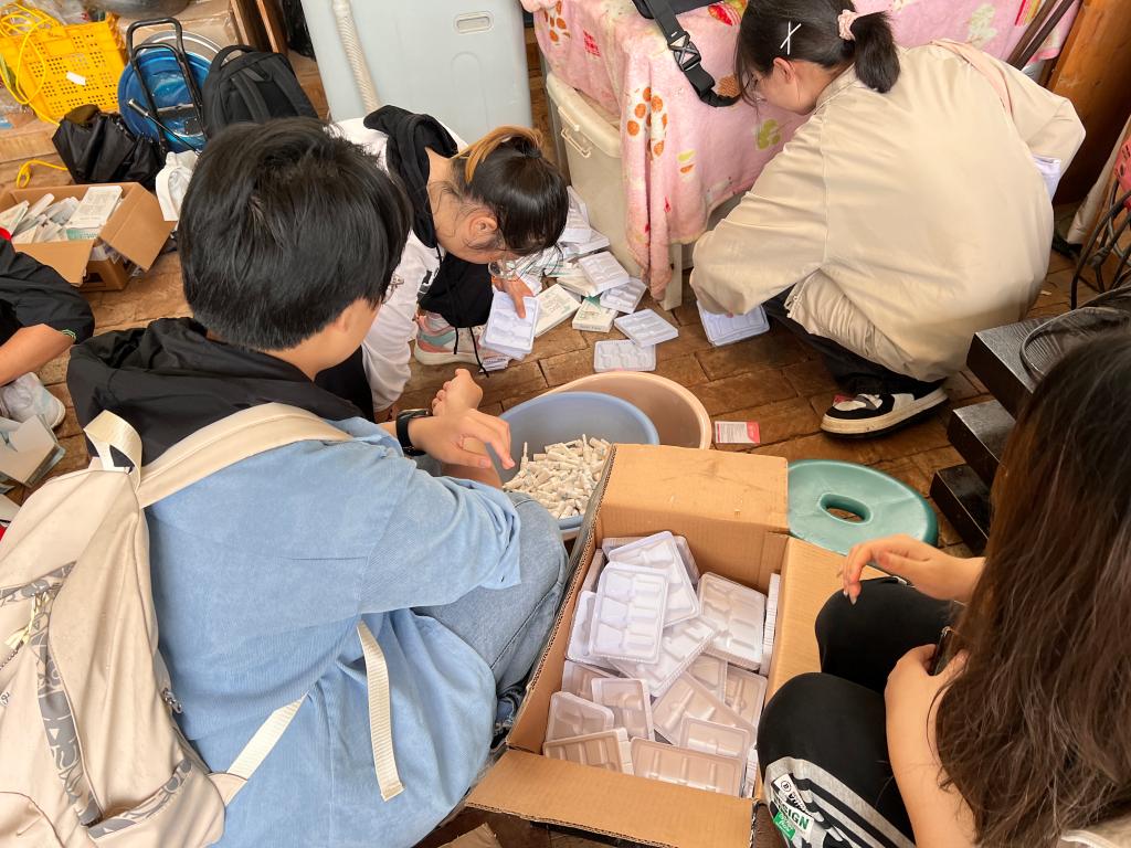 活动期间,志愿者们帮助驿站人员挂绳子晾晒物品、分装小狗的药品和保健品、给小动物们准备辅食。提前准备好食物给小狗们投食,在犬舍与小狗们进行亲密互动,用最大的善意对待这些可爱的小天使。