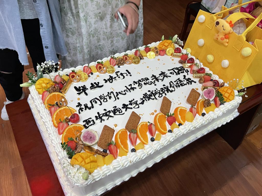 最后,毕业生们与参会老师共同切开了毕业蛋糕,至此本次毕业生欢送会圆满结束。此次欢送会给毕业生营造了一个充满温情的毕业氛围,不仅表达了外语系对毕业生的祝福,同时促进了师生间的交流,展现了师生进取向上,青春昂扬的精神风貌。