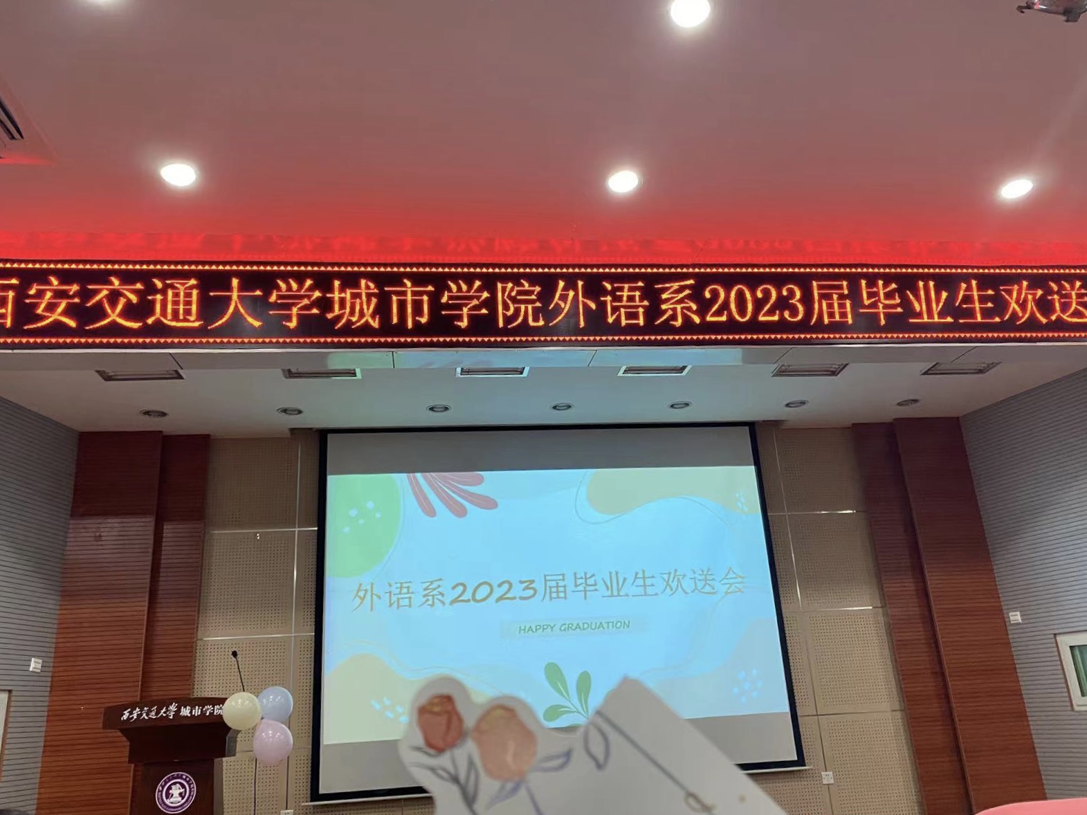 在2023届毕业生即将告别母校之际,为提升毕业生对母校的归属感,让广大毕业生感受外语系的关怀与祝福,打造浓厚的校园文化氛围,引领毕业生积极投身工作,以崭新的面貌迎接未来的挑战与机遇,外语系于6月2日下午在F100举行了毕业生欢送会。外语系副主任徐素云副教授、外语系副主任巫奕君副教授及英语专业教研室、日语专业教研室19名老师参加此次欢送会。2019级毕业生郗悦靓主持此次会议。