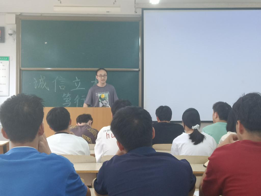 活动第一讲,由电信系21级学生杨泽远发言,杨泽远学习成绩优异,积极参加各类学科竞赛,且在学院团委担任办公室副主任一职,他向到场学生分享了自身如何兼顾工作和学习的经验,鼓励同学们在大学期间充分展现自我,抓紧对高数、英语和专业课程的知识积累,积极参加“电工杯”“全国大学生电子设计大赛”等各类学科竞赛。第二讲,由22级学生宋娅妮从国家助学贷款的目的、借贷方式、还款方式等几个方面为大家讲解国家助学贷款的相关内容,呼吁同学们应恪守诚信之德,常怀感恩之心,诚信借贷诚信还贷。第三讲,由辅导员梁新雨对此次活动进行总结发言,动员全体同学在接下来的期末考试中认真备考,诚信考试,在即将到来的期末考试中取得优异的成绩。