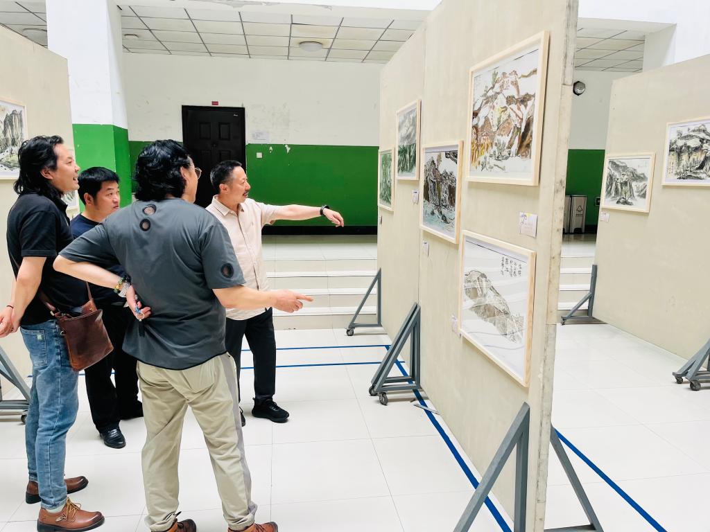 6月19日,教学D楼大厅举办艺术系2022级书法及中国画专业师生写生作品展。艺术系主任解安宁、威尼斯7798cc兼职教师袁成业、陕西省书画研究会副秘书长杨晓刚以及艺术系师生参加了此次活动开幕式。