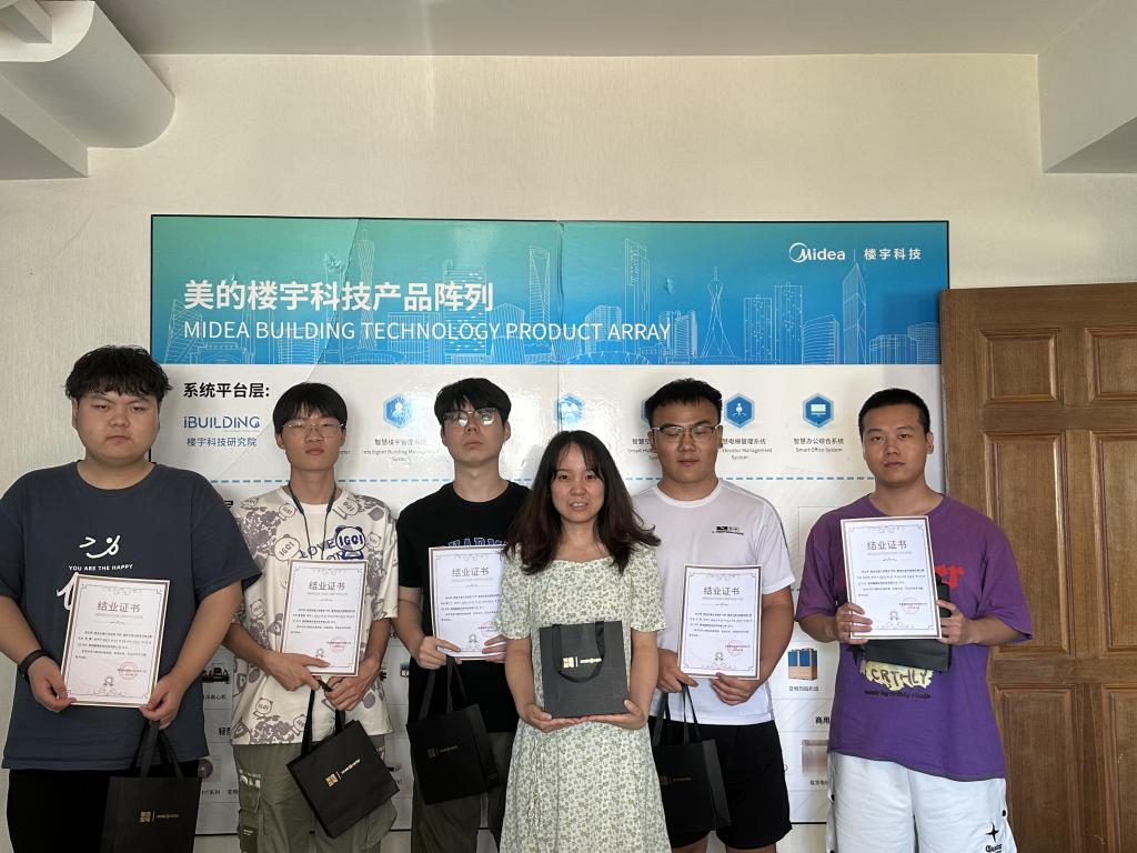 实习结束时,学生进行了实习内容考试和实习成果的汇报答辩,由企业2位指导老师与带队老师一起就学生所汇报的内容进行提问和点评,综合评定给出实习成绩。学生们表现良好,均获得企业颁发的结业证书。学生表示,要用专业力量实现绿色节能的“四季如春”。
