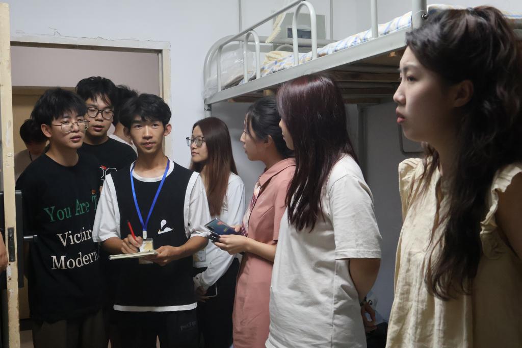 通过走访新生宿舍听取学生心声,进一步了解新生入校后的具体情况以及实际需求,学生党员及学生干部为新生解答疑惑,介绍如何使用校内App以及进行反诈宣传。