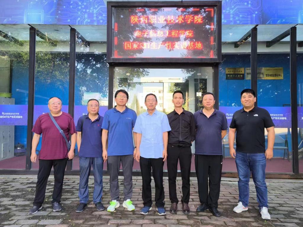 陕西职业技术学院电子信息工程学院马晓荣院长介绍了学校的情况及人才培养的整体思路,强调人才培养要坚持三点基本原则:一是人才培养需育人为本,促进人才全面发展。全面推动习近平新时代中国特色社会主义思想进教材进课堂进头脑,积极培育和践行社会主义核心价值观。二是学校需坚持遵循规律,体现培养特色。遵循职业教育、技术技能、人才成长和学生身心发展规律,处理好公共基础课程与专业课程、理论教学与实践教学、学历证书与各类职业培训证书之间的关系,整体设计教学活动。三是坚持完善教育教学机制,推动培养方案持续改进。紧跟产业发展趋势和行业人才需求,建立健全行业企业、第三方评价机构等多方参与的专业人才培养方案动态调整机制,强化教师参与教学和课程改革的效果评价与激励,做好人才培养质量评价与反馈。随后双方领导对人才培养,学生就业,措施举措进行了深入交流并一同参观了陕西职业技术学院国家SMT生产性实训基地。
