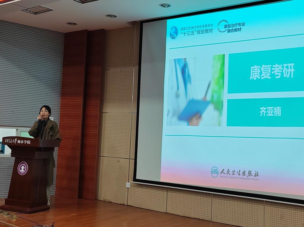 赵宏霞老师从护理专业考研趋势、考研目的为出发点进行主要讲解。她通过自身例子与学生互动,加强学生对专硕和学硕的认识及择校须知。此外,齐亚楠老师就康复专业考研进行考研授验,从考研目标、复习规划、心理调节等方面给予详细指导,使同学们对择校和备考有了更深层次的了解与判断。两位老师强调,备考需要努力提升个人综合素质,挖掘自身学术发展潜能,根据自身情况制定合适的复习计划。最后由优秀毕业生代表陈瑾沛学姐为同学们分享了自己的考研经验,结合其自身实际情况,对考研前期、中期、后期的学习规划进行分析。包括收集院校初、复试信息,确定目标院校,理解知识点,冲刺纠错。为同学提供正确考研信息,清晰学生的考研规划。