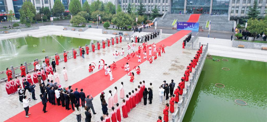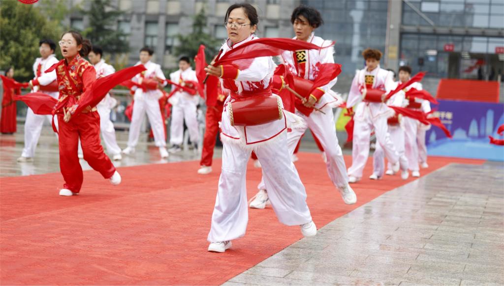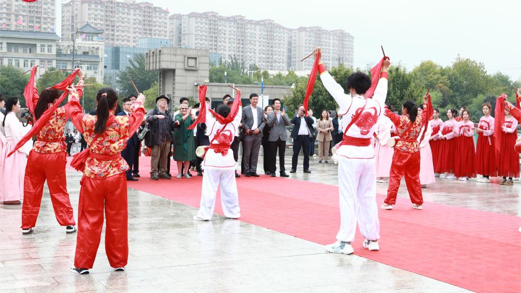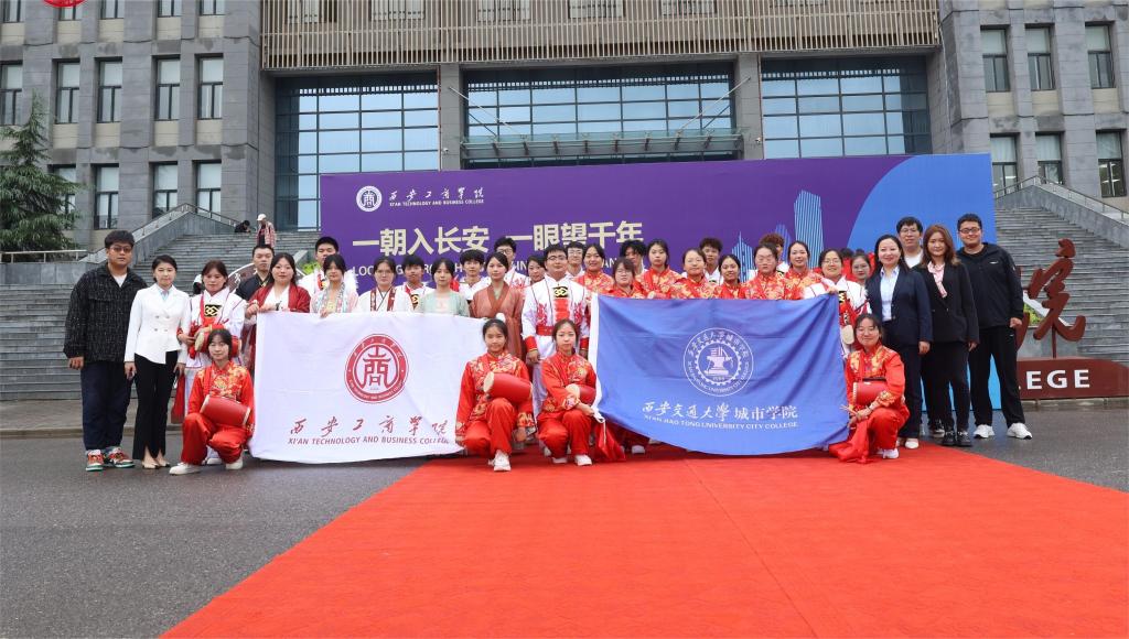 西安工商学院团委学生副书记赵毅向实践团表示欢迎,希望双方社团能在交流中得到双赢。在教学实践过程中,学院实践团领队艾庆凯向对方系统地介绍了陕北腰鼓的由来和发展历史,社员们现场展示了陕北腰鼓的几种基本打法。在两校社团的共同努力下,双方共同编排了腰鼓节目《鼓舞盛世》,并在中国西安2023首届大学生文化创意设计大赛开幕当天为剑桥大学考古与遗产研究学者团进行了展示。