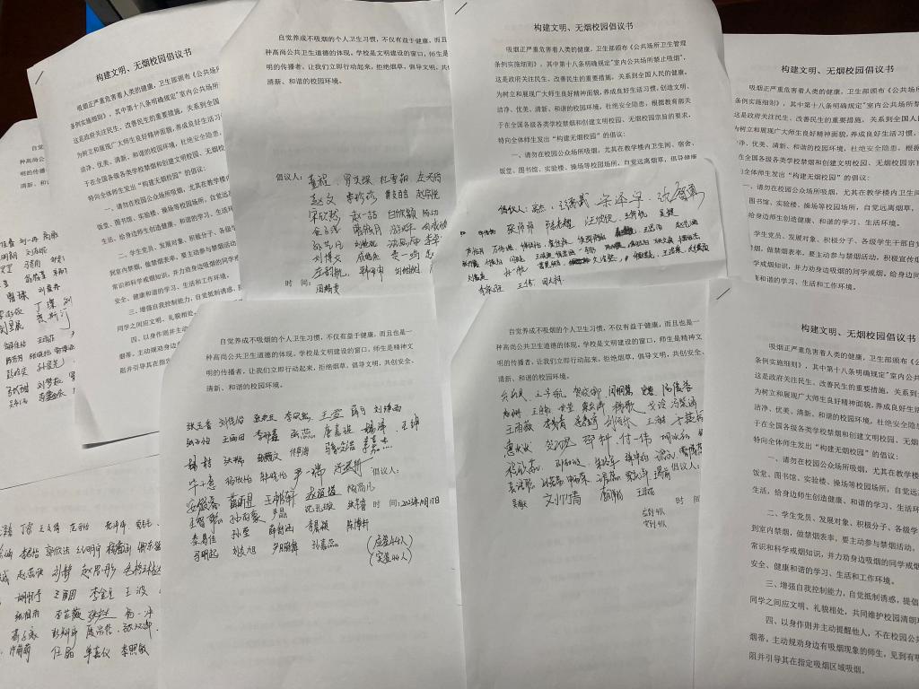 各班积极开展文明礼仪教育主题班会,就前期文明礼仪、行为规范等方面存在的问题提出整改措施,切实提高学生思想道德素质,构建文明校园,推广尊师崇礼行动,引导学生“礼”从口出、遇师问好,弘扬中华优秀传统美德、倡导文明礼仪新风。除此之外,在全系范围内开展“禁烟活动”,全体学生签署《构建文明、无烟校园倡议书》,发挥党团学生干部,积极宣传烟草危害等知识及戒烟知识,主动制止、规劝校园不文明行为。