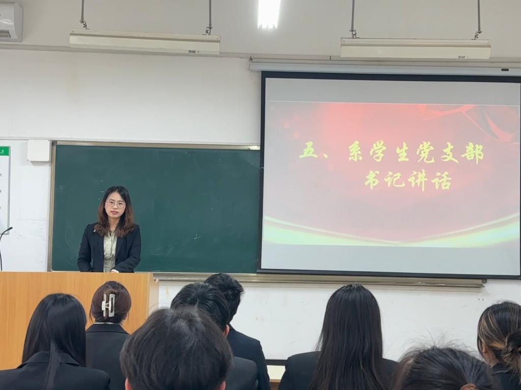 奏唱国歌后,大会拉开帷幕。学院团委黎杨对本次大会进行会议致辞,他肯定了外语系学生会取得的各项成果,同时也对学生干部提出了更高的要求,勉励他们在新一年的工作中持续发力,争取取得更好的成绩。接着,院学生会主席团张家欢就一年来外语系学生会对院学生会工作的大力支持表示感谢,希望日后继续保持友好合作关系,将工作落到实处,真正做到为同学服务。最后,外语系学生党支部书记吴丹对学生干部提出要求,希望他们可以坚定理想信念,担当使命,不断锤炼本领,提高素质,继续发扬外语系学生会优良传统,在新征程不懈奋斗,砥砺前行。