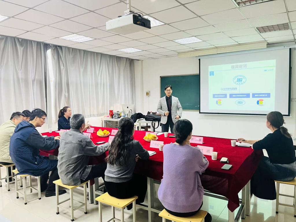 韩国檀国大学国际处处长曹承铉向解教授等人详细介绍了檀国大学的办学背景、专业优势等基本情况。并诚挚邀请艺术系师生前往檀国大学参观学习。