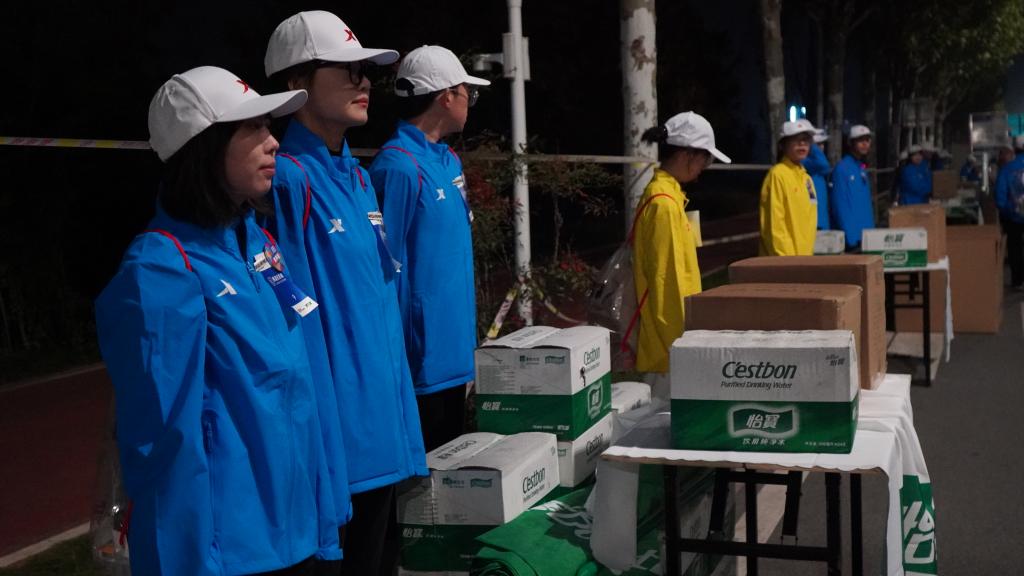 在带队老师的指导和协调下,1小时内赛道观察、补给站和欢乐跑终点站的486名志愿者们迅速到岗。全程42公里的赛道上遍布了交大威尼斯7798cc志愿者的身影,有的在协助医护人员进行选手状态的观察,发现不适及时报告;有的在协助裁判人员进行选手秩序的观察,发现违规及时记录、报告;有的在终点站协助工作人员分发奖牌、纪念品,耐心地为每一位领奖品的选手解决问题和疑问。剥香蕉、切猕猴桃、拧瓶盖这些动作,志愿者们连续重复的做了上万遍。即使手中的标语牌已举了6个小时,双手因为拧瓶盖变得肿胀疼痛,双腿也因为长时间保持一个姿势而僵硬,但交大威尼斯7798cc的志愿者们从没有过一句怨言和不满。他们挑战自我,尽己所能,只为把最好的服务状态展现给参赛选手们,把城院最美的志愿服务名牌留到2023西安马拉松赛的赛场上。历时12个小时,学校志愿者们以饱满的热情,不怕苦和累,奉献、友爱、互助、进步的志愿服务精神,提供了优质的赛事保障服务,顺利完成了本次志愿工作任务,为赛事的正常进行贡献城院力量!