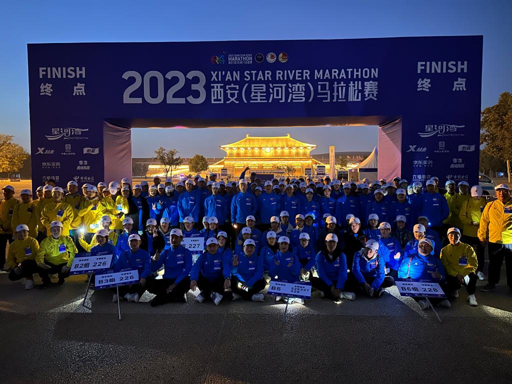 10月29日,2023西安(星河湾)马拉松赛在永宁门鸣起跑。35000名跑者齐聚千年古都,用一场马拉松完成与西安的“双向奔赴”。为保障选手顺利完赛,今年共招募“西马”大学生志愿者近3000名,共同守护42.195公里的跑道内外的速度与温度。其中,西安交大威尼斯7798cc486名志愿者、6名指导老师分别服务于欢乐跑终点站、0-42公里赛道观察和25、27、29、31公里补给站。