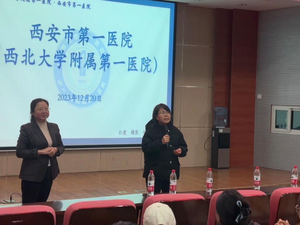 任燕萍主任为同学们讲述了关于学生未来职业发展和培训的信息。西安市第一医院提供了很多学习和培训的机会,帮助学生们不断提升自己的专业技能和综合素质,使学生们更加深入了解了医疗行业的工作环境和职业发展,并给予同学们很多宝贵的意见和建议。
