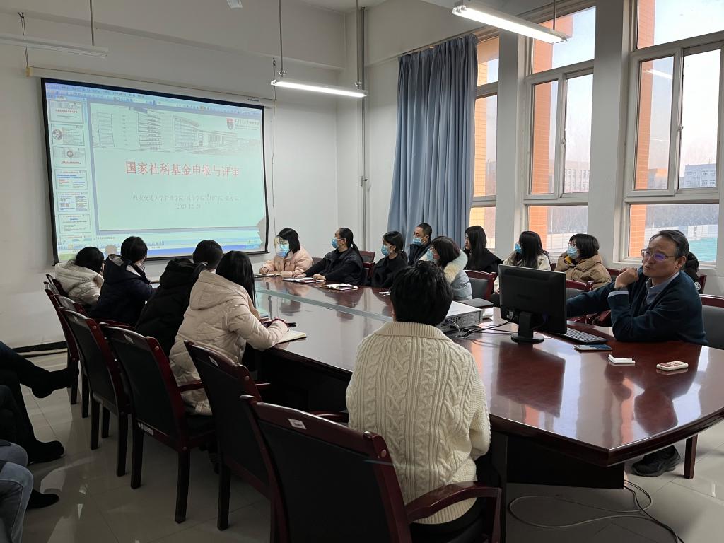 会上,张俊瑞教授开展了“国家社科基金申报与评审”主题讲座。张教授结合多年申报和评审国家社科基金的经验,分别从社科基金与自然科学基金的区别、社科基金的申报准备、国家社科基金评审、基金申请体会、失败或未获资助的原因分析等五个方面介绍了国家社科基金的申报要点。同时,鼓励教师找准研究方向、夯实科研基础、坚持不懈。