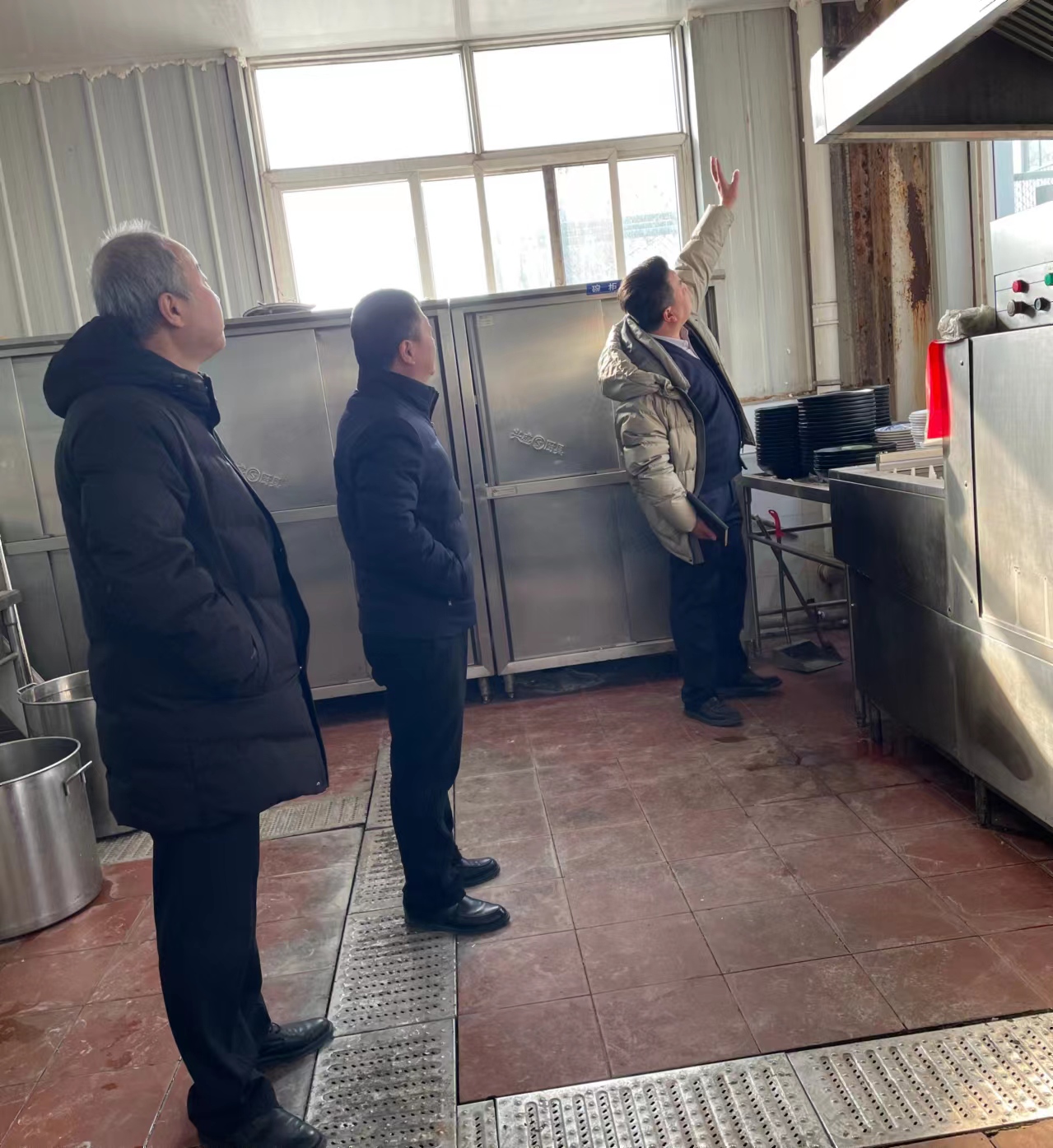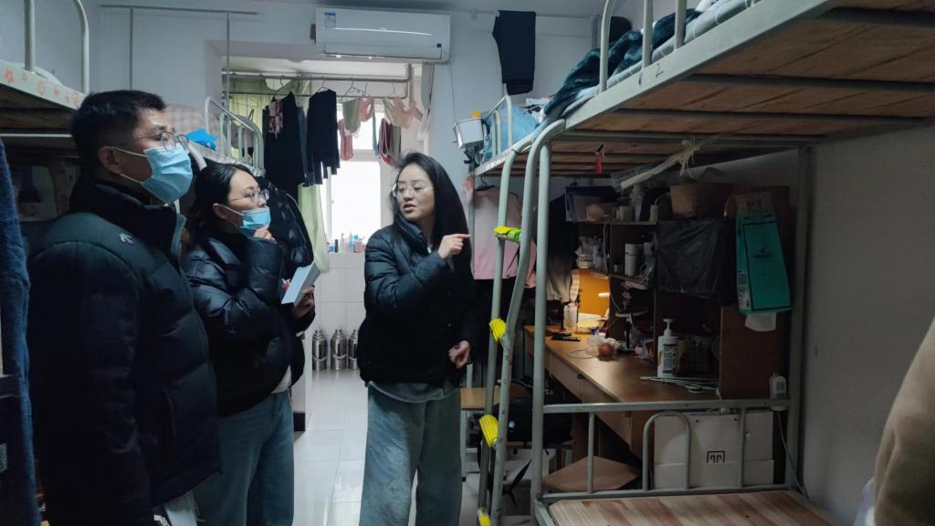 会后,辛红伟处长带队深入学生公寓和食堂进行全面检查。在学生公寓,检查人员重点检查了留校学生宿舍内的安全用电、卫生情况、消防安全等。检查人员仔细查看宿舍的电源插座、电器使用情况,并叮嘱留校同学注意用电安全。在食堂,检查人员查看厨房设备,消防设施,用水用电,燃气安全等情况,并深入城市餐厅及公寓U型空间改造现场进行督察。
