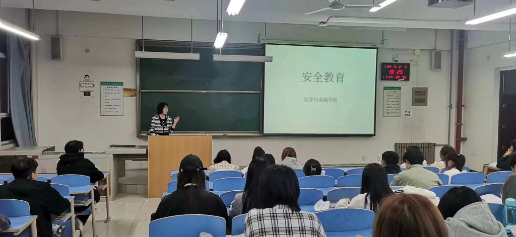 院长助理廉宇婷对安全教育管理工作进行总体部署。经济与金融学院全体辅导员结合学生实际,多形式开展了安全教育主题班会,将安全教育工作传达到每位学生,营造安全和谐稳定的校园环境。同时,全体辅导员对节前安全进行排查,通过检查宿舍卫生、违禁电器、用电安全情况,对发现的隐患现场督促整改到位,并叮嘱学生假期出行注意人身安全和财产安全。同时,学院充分发挥学生干部力量,组织班级同学观看安全教育微电影,宣传相关的安全防范与急救意识,做到防患于未然。学生干部带领同学们分别在教学楼和宿舍楼对消防用品的位置和使用方法进行提醒和说明并分享了一些紧急情况下的逃生技巧。