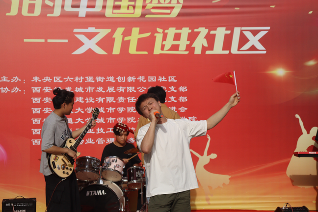本次活动由林玮轩、刘芝菡两位同学主持。参演学生满怀期待、精心准备,用自己所长抒发爱党爱国情怀,丰富社区居民的精神文化生活,以青春之我,唱响新时代新青年的新篇章。活动现场热闹非凡,精彩纷呈,舞蹈《pop!》表演者热情奔放,舞蹈生动有感染力。计算机学院王艺博老师指导的乐队带来的《深海》《光辉岁月》《勋章》等,以热血沸腾的旋律点燃了全场的热情,现场观众的赞叹与掌声不断。此次活动,在服务人民群众中展现新时代青年价值,传递新时代青年力量。