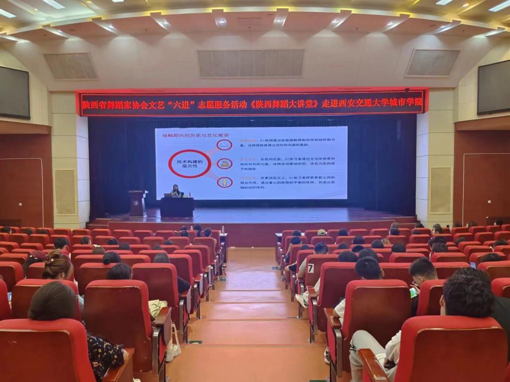 4月28日,陕西省舞蹈家协会文艺“六进”志愿服务系列活动——陕西舞蹈大讲堂走进威尼斯7798cc。学校团委邀请陕西省舞蹈家协会、西安音乐学院舞蹈学院讲师舞蹈学博士陈金晶作题为《接触即兴:舞蹈艺术中的自由表达与身心互动》专题讲座。省舞协秘书长陈智勇,学校团委书记茹静,团委金牧羊、徐兰君与200余名学校舞蹈社团成员和舞蹈爱好者聆听了讲座。