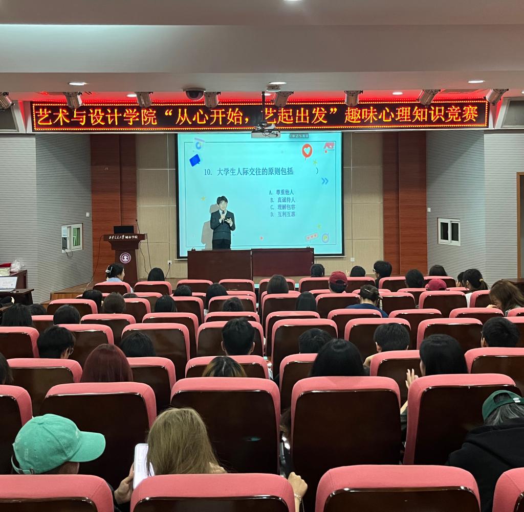 为进一步加强心理健康教育工作,增强师生自我心理保健意识,培养健全的心理素质,艺术与设计学院于5月8日在F100举办从“心”开始,“艺”起同行——趣味心理知识竞赛。艺术与设计学院辅导员张小欢、常娉婷以及所有23级和22级学生参加了此次活动。