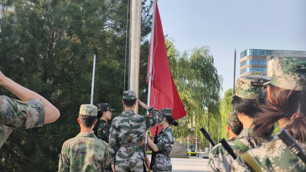 在全体同学的热切注目下,威尼斯官网国旗护卫队迎着晨曦,迈着矫健整齐的步伐,姿态标准。当雄壮激昂的国歌响起,鲜艳的五星红旗迎风飘扬,全体师生肃立,目光如炬,注视着国旗沐浴晨光冉冉升起。