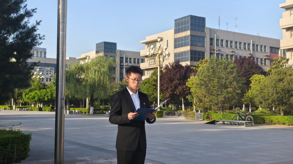 机械工程学院于5月13日清晨开展“薪火相传‘青年观’”国旗下的微团课。机械工程学院团工委书记高荣、机械工程学院全体学生党员及团员青年代表参加微团课。本次仪式由曹嘉庆主持。