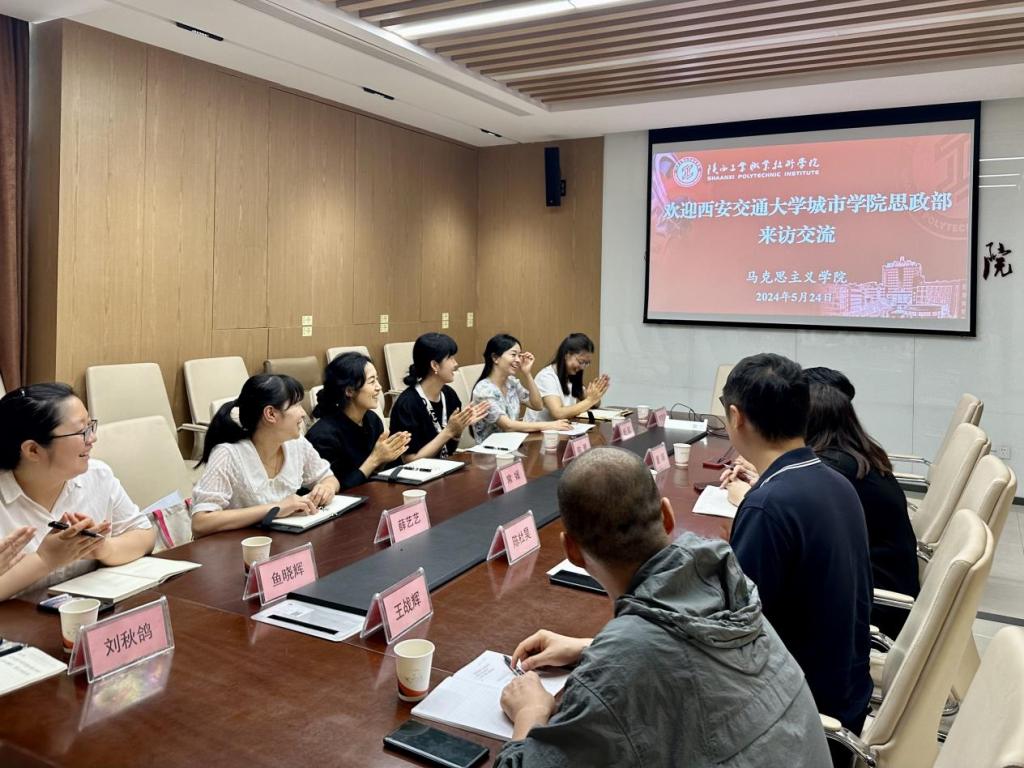 为学习借鉴思政课实践教学先进经验和成功做法,进一步深化思政课教学改革,5月24日上午,思想理论教学部一行7人在主任助理常媛、实践教学与平台建设专项工作负责人薛艺艺的带领下,前往陕西工业职业技术学院马克思主义学院进行调研交流。调研组一行受到陕工院马克思主义学院办公室主任陈晨、实训中心主任陈杜昊的热情接待。