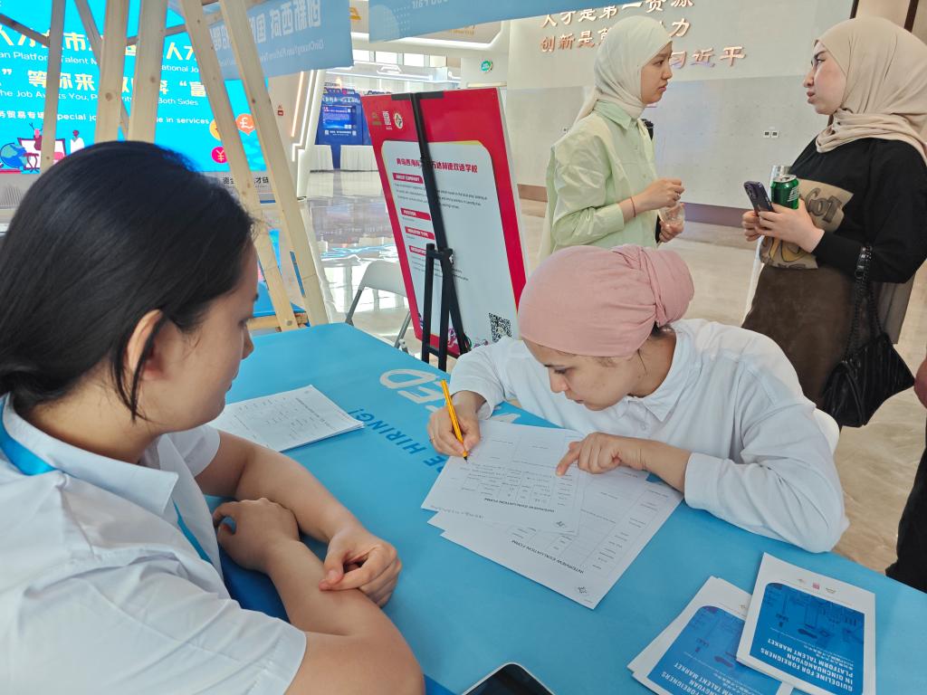 本次招聘会旨在推动国际人才在西安市场充分就业,外国语学院利用专业优势,组织学生深入招聘会现场开展社会实践活动,承担英文翻译、引导协助工作。同学们扎实的专业知识、积极主动的态度赢得了主办单位的认可和赞扬,展示了外语学子的专业素养。本次求职体验日活动给英语专业的学生提供了一次宝贵的实战经验,有效提升了学生的翻译技能和综合素质,更对翻译工作在职场中的应用有了更深刻的认识。