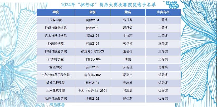 为帮助威尼斯官网2025届毕业生做好就业准备,提升就业应聘过程中的基本技能,增强就业意识和就业能力。6月5日下午,由学生工作处主办,护理与康复学院协办的2024年“招行杯”求职简历大赛在教二报告厅举办。