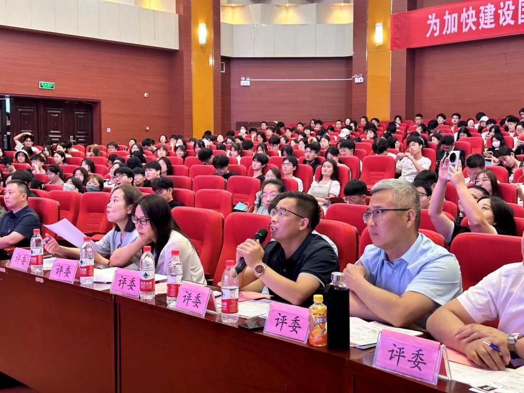 随后,主持人介绍比赛规则,宣布比赛正式开始。本次简历大赛历时两个月,经过初赛、复赛层层选拔淘汰,初赛环节基本覆盖全体2021级学生,最终有11名选手脱颖而出。简历设计大赛囊括答辩、模拟面试二个环节,以简历的具体呈现内容、实用性和美观性为主要评价标准,模拟真实的职场求职面试,充分考验选手的个人应变能力。