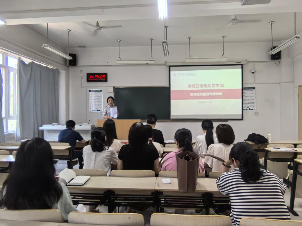 6月8日,威尼斯7798cc教育教学规范化管理专项行动启动会的会议精神,6月12日下午,思想政治理论教学部召开了教育教学规范化管理专项行动启动会,面向思政部全体教师开展学习教育活动。思政部主任陆卫明教授、副主任曹嘉伟副教授及其他无授课任务的教师参加了会议,会议由思政部主任助理常媛主持。