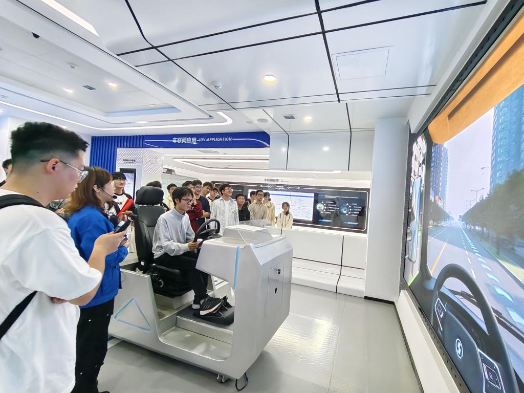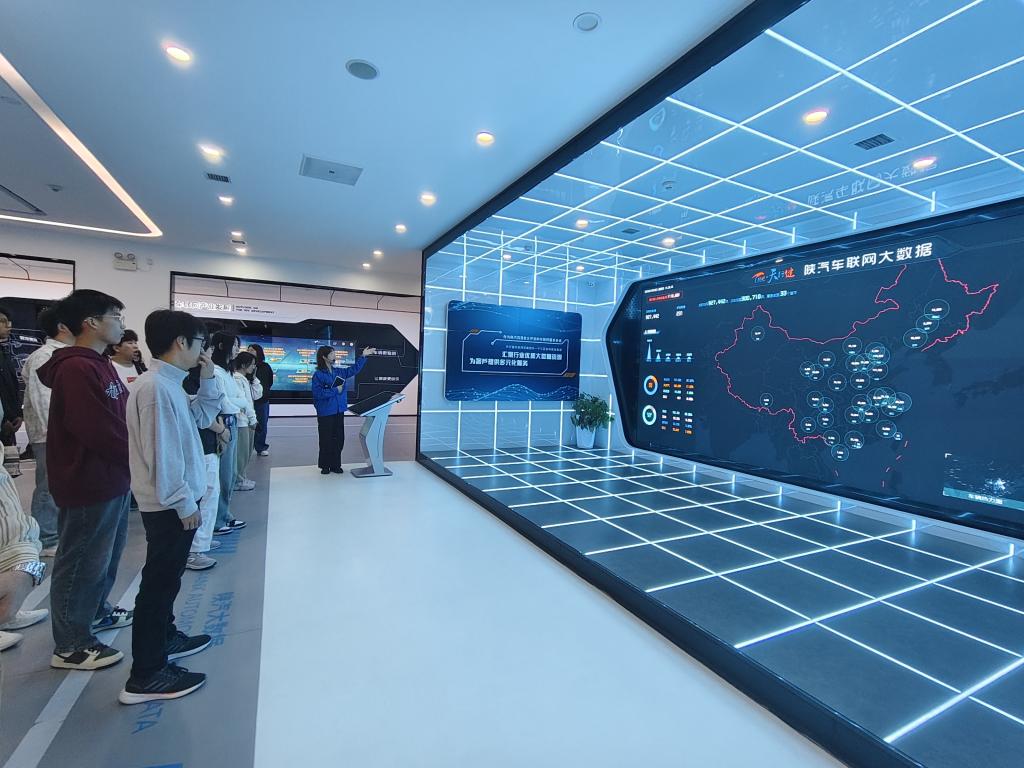 抵达陕汽集团后,工作人员先后带领同学们参观了陕汽展厅、陕汽天行健车联网体验中心和陕汽重卡生产车间。进入陕汽展厅,讲解老师为同学们讲解习近平总书记在陕汽考察时的重要讲话精神以及企业的发展历程、相关荣誉、企业创新发展规划、产品规划等一系列内容,同学们都非常认真地聆听这一堂生动的“实践课”。在陕汽天行健车联网体验中心,同学们看到了陕汽人在信息集成化、数据可视化、服务人性化等方面构建的宏伟蓝图。同学们还体验了陕汽的车辆模拟机。随后,同学们在讲解员的带领下来到陕汽生产车间。整个车间布局合理,区域划分清晰,生产线采用了大量智能设备,同学们感受到了科技与工业的完美结合。
