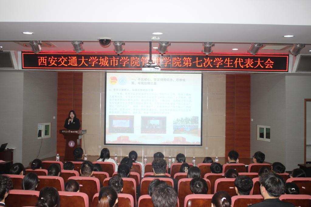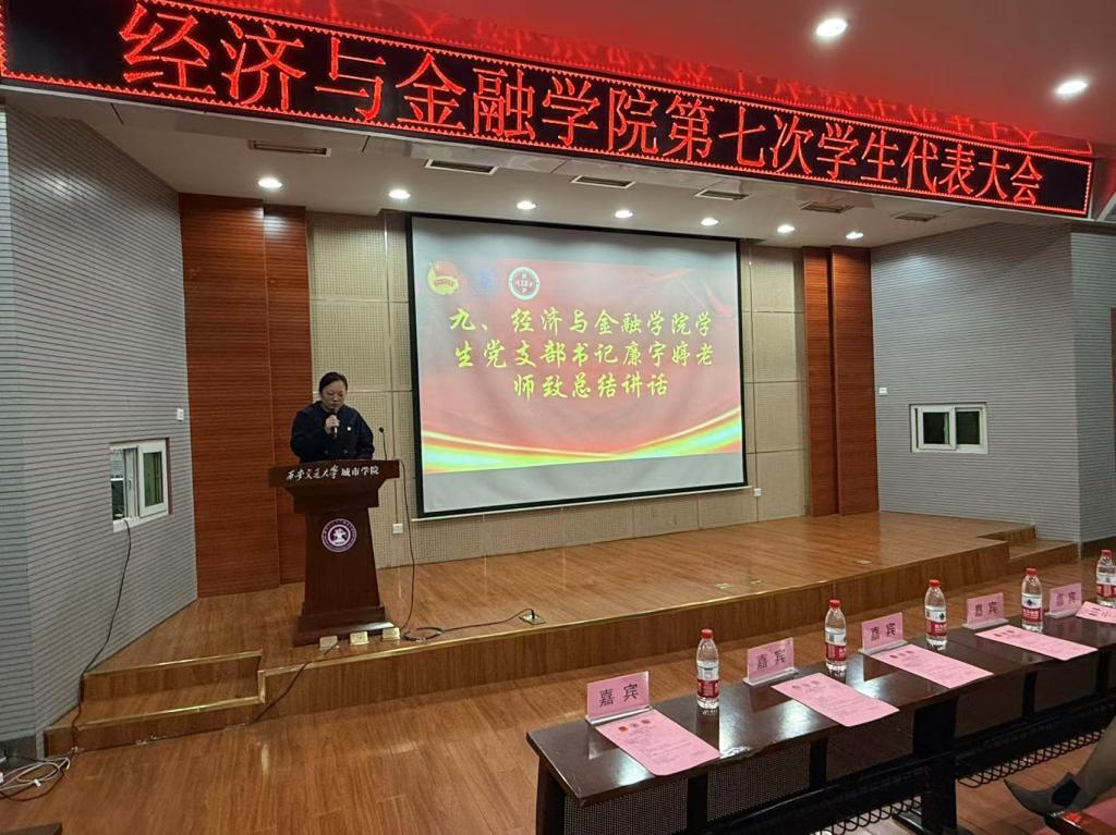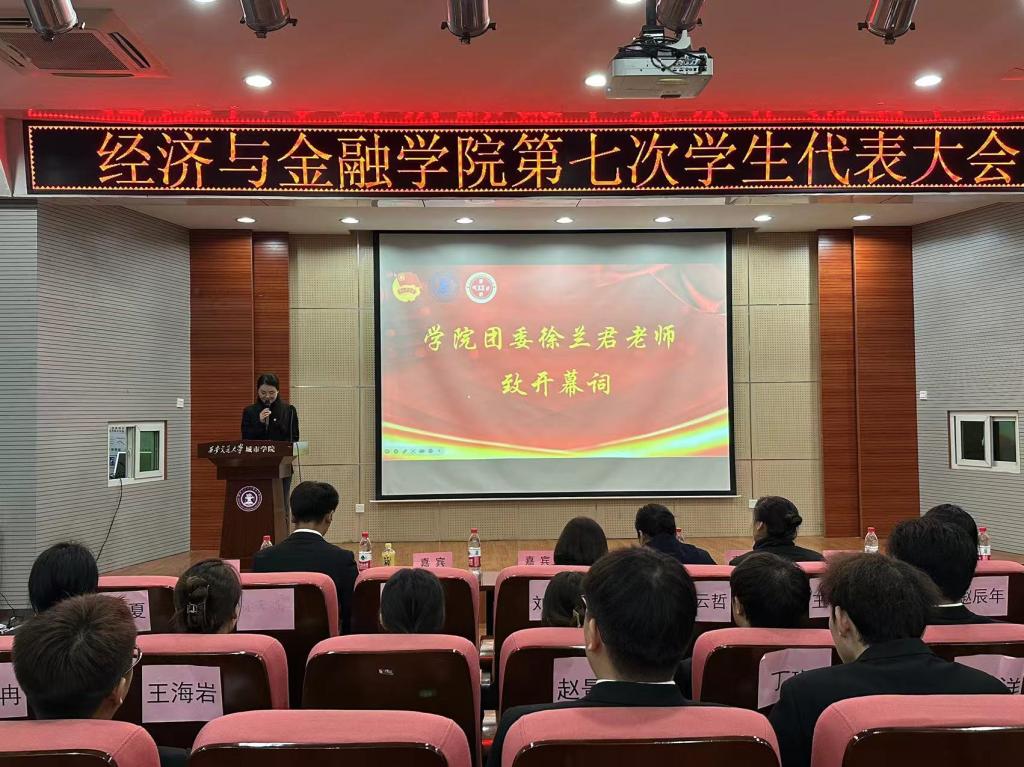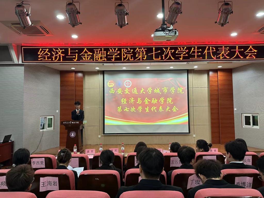 经济与金融学院于10月22日在F100报告厅召开第七次学生代表大会。团委徐兰君,经济与金融学院学生党支部书记廉宇婷,团工委书记蒋美一帆,学工办杨静怡、张进,校学生会主席杨泽远,土木建筑工程学院执行主席宋以琛参加会议。本次大会由彭莉同学和汪欣欣同学主持。