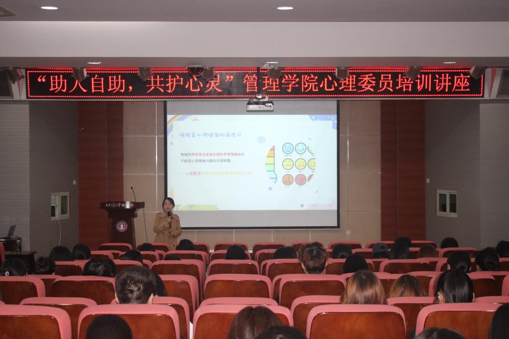管理学院于10月29日在F100举办“助人自助,共护心灵”心理委员培训讲座。2024级全体班级及宿舍心理委员参加了本次讲座。培训由管理学院心育专员张德馨主讲。