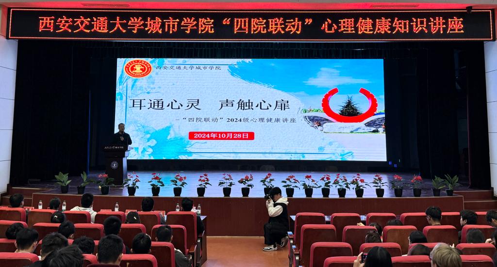 为了提升大学生的心理健康意识,促进个人身心灵的全面发展,并为学生提供一个了解和探讨心理健康问题的平台。计算机学院、护理与康复学院、机械工程学院、物理与新能源学院四院联动,于10月28日举办“耳通心灵,声触心扉”大学生心理健康讲座。本次讲座邀请资深心理健康咨询师常剑主讲。