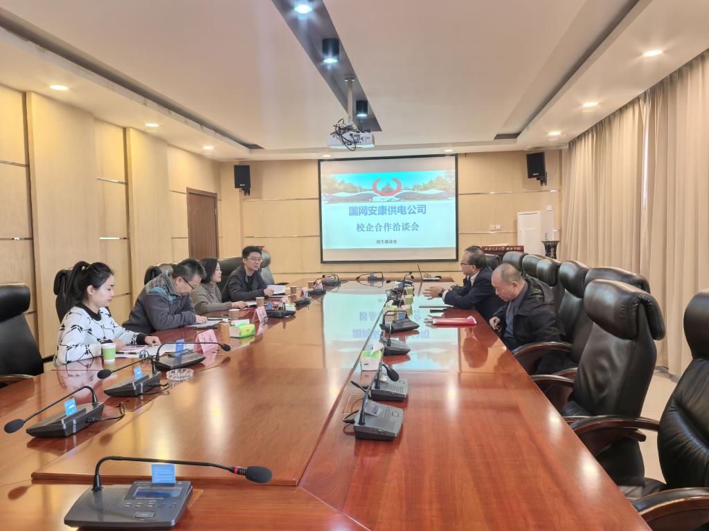 会议伊始,吴昊翔副处长对国网安康供电公司领导的到来表示欢迎,并简要介绍了学校的基本情况、办学优势、专业设置以及人才培养模式等。国网安康供电公司领导也详细阐述了公司的业务范围、发展现状、人才需求、现有的用工形式及校企合作的具体设想和规划等。