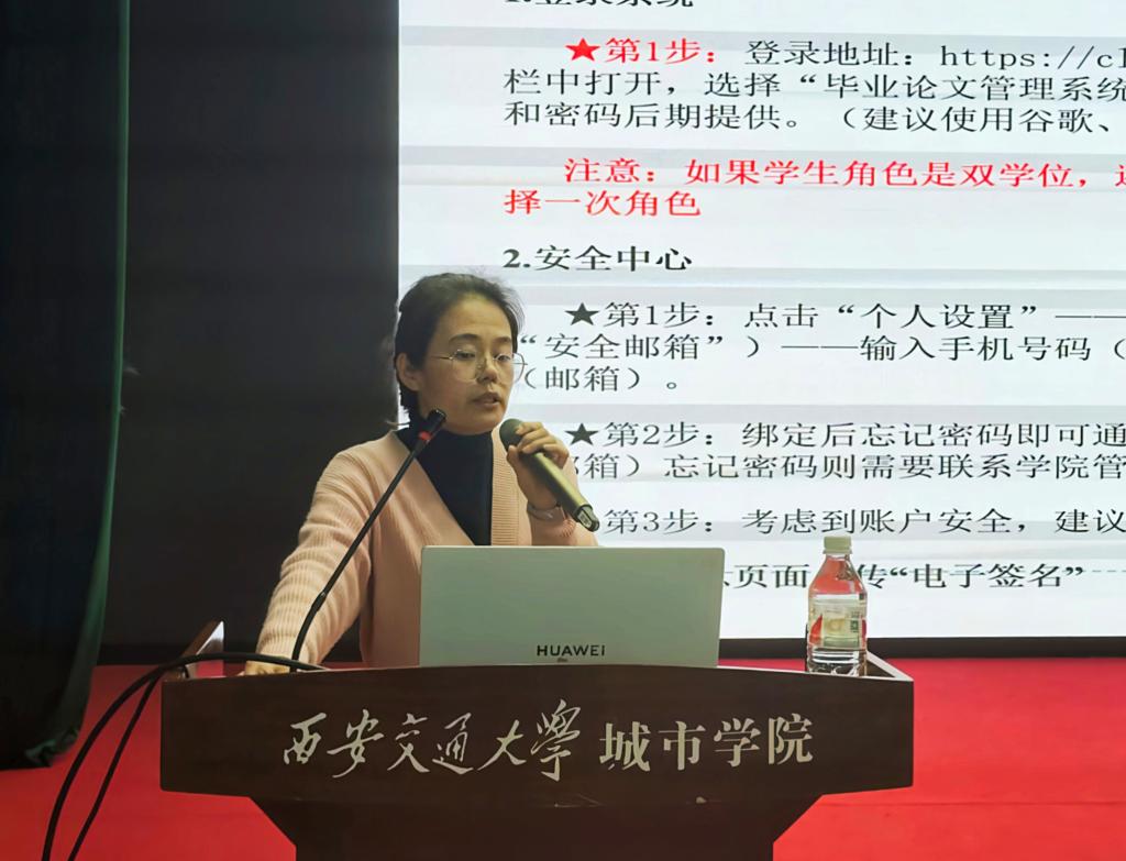 随后,赵瑾介绍了毕业设计工作流程、时间节点与内容、毕业设计规范与要求,着重强调了往届毕业设计各环节中出现的问题。