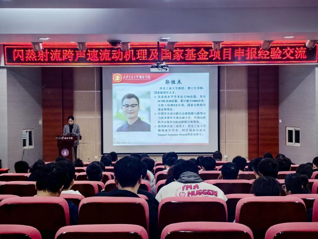 11月11日下午,机械工程学院在教学楼F100报告厅举办“闪蒸射流跨声速流动机理及国家基金项目申报经验交流”学术讲座,特邀西北工业大学动力与能源学院教授、中国空天动力联合会新能源与新型动力技术青年专委会副主任、中国内燃机学会氢发动机创新联合体理事郭恒杰主讲。机械工程学院院长刘吉轩、副院长王国平、实验中心副主任张伟,院长助理王丽丽、门静,机械工程学院全体教工及学生代表聆听讲座,能源与动力工程系主任李莉主持本次讲座。