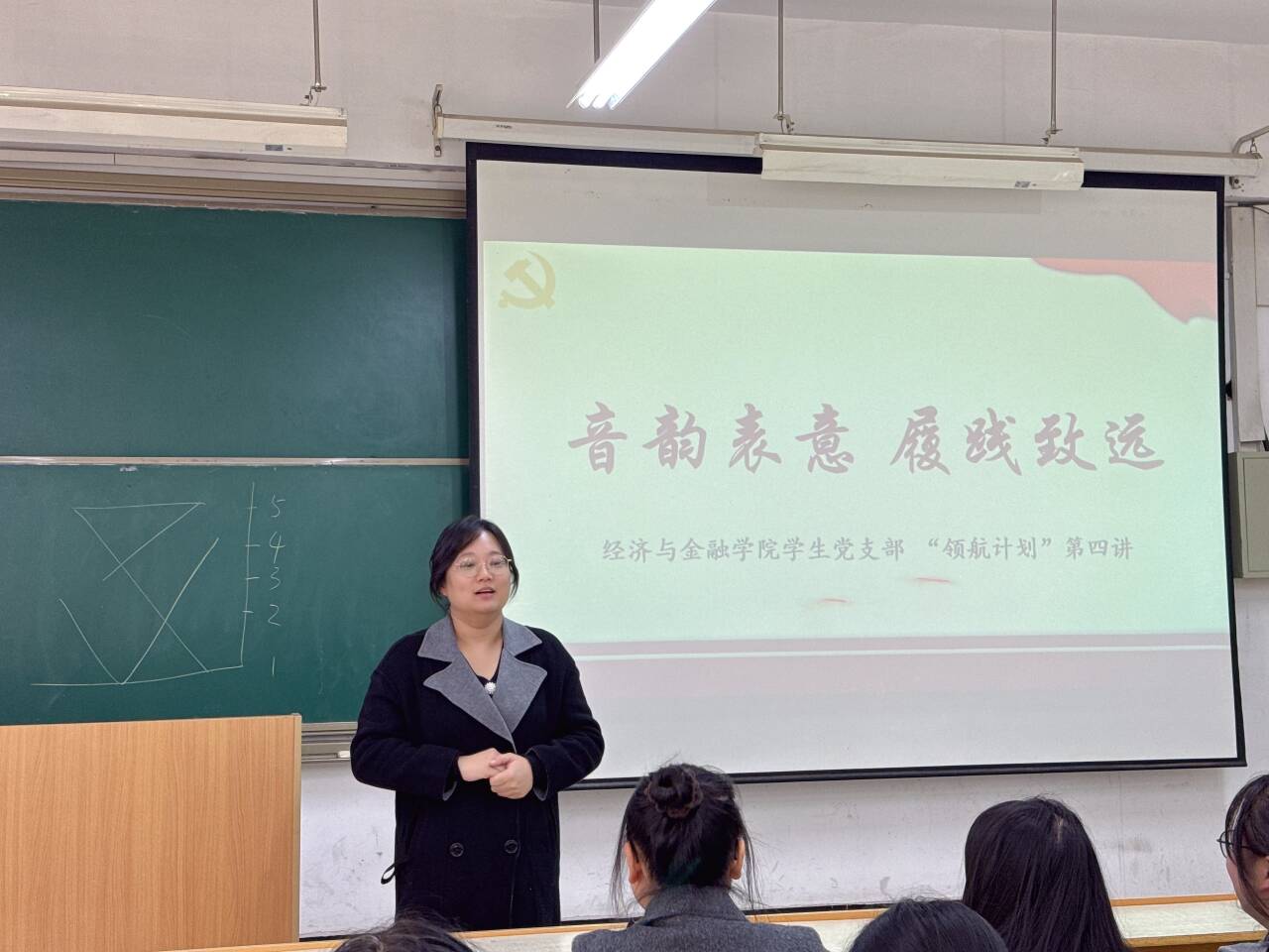 为弘扬优秀文化,普及播音主持艺术技巧,扎实推进学习型支部建设,着力提升支部党员综合素质能力,激励学生党员在日常生活中把实践与学习深度交融、协同推进。经济与金融学院学生党支部于11月22日在教室D107开展“领航计划”第四讲——音韵表意、履践致远,会议由经济与金融学院学生党支部书记廉宇婷主持,经济与金融学院学生党支部组织委员杨静怡、宣传委员张进和全体党员参加了本次活动,本次活动邀请播主2401班的刘慈同学作为主讲人。