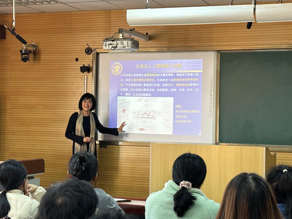 活动邀请了华为擎云智慧教育技术总监王一冰作题为“人工智能赋能教育教学与科研”的报告,他分享了AI在智慧教学科研方面的先进技术与创新成果,包括智慧课程构建、AI助研平台建设及AI赋能教师发展等主题。随后,廖红建教授进行了题为“AIGC赋能课程建设改革与创新”的主题分享,她深入介绍了人工智能的内涵、发展及在土木工程专业教学中的应用,强调了智慧教育在现代教学过程当中的重要作用,希望全体教师以积极心态投入AI赋能课程建设与教学改革中。